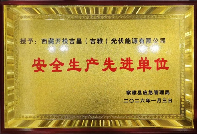 近日,西藏開投吉昌(吉雅)光伏能源公司被察雅縣應(yīng)急管理局授予安全生產(chǎn)先進單位榮譽稱號。 此項榮譽的獲得,是地方政府對公司安全